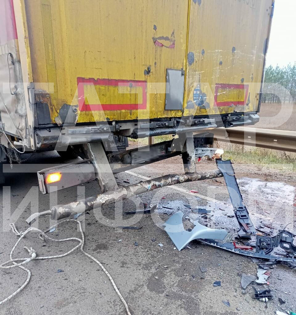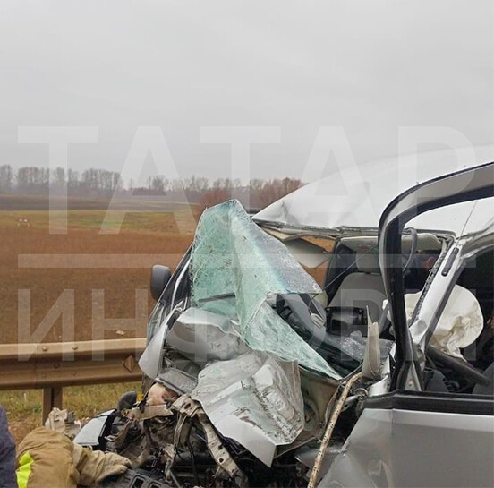 По их информации, под Актанышем водитель Toyota на большой скорости врезался сзади в прицеп фуры Mercedes. Перед микроавтобуса был смят, разбилось лобовое стекло, бампер отлетел на дорогу.