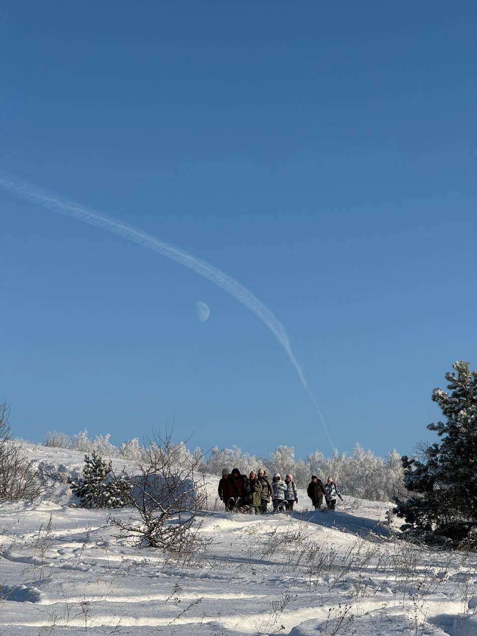 Участники шли по заснеженной тропе, останавливались на смотровых точках, знакомились с природными особенностями зимнего ландшафта и историей местности. Завершением маршрута стала оздоровительная практика, направленная на умение находиться в настоящем моменте.
