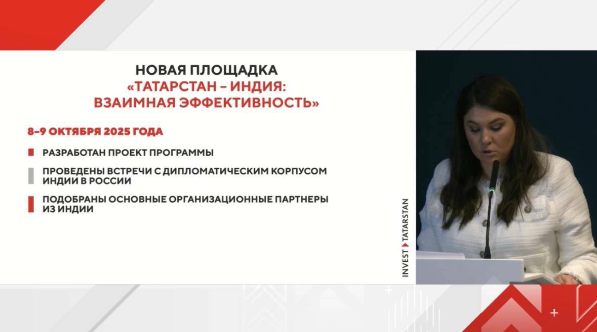 «2025 год ознаменован запуском новой крупной конференции "Казань – Индия". Эта площадка впервые пройдет в октябре 2025 года. Она называется TIME: Татарстан и Индия, взаимная эффективность», – сказала Минуллина.