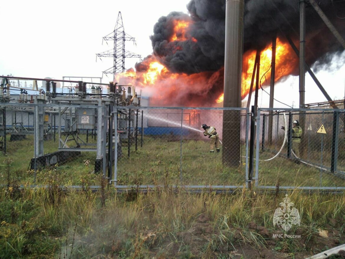 В ведомстве отметили, что электроподстанция обесточена, угрозы распространения пожара нет.