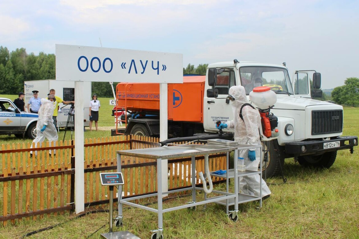 Наглядно участники учений показали процедуру отбора и доставки проб биологического и патологического материала в ветлабораторию, методы их лабораторного исследования, проведения в условном эпизоотическом очаге бескровного убоя, уничтожения павших и вынужденно убитых животных.