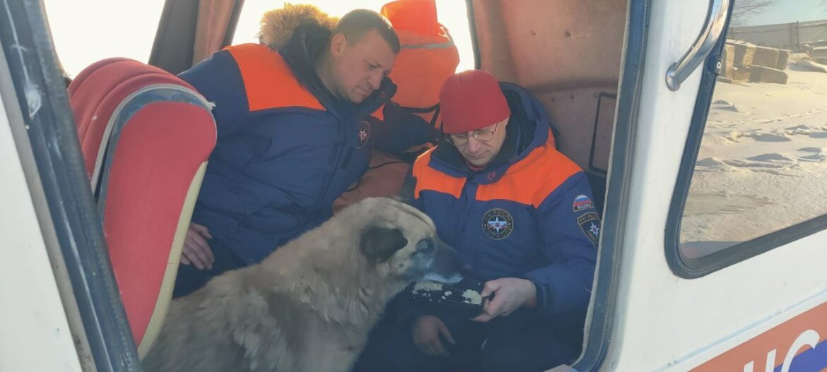 В Татарстане спасли собаку, которая провалилась под лед на Волге