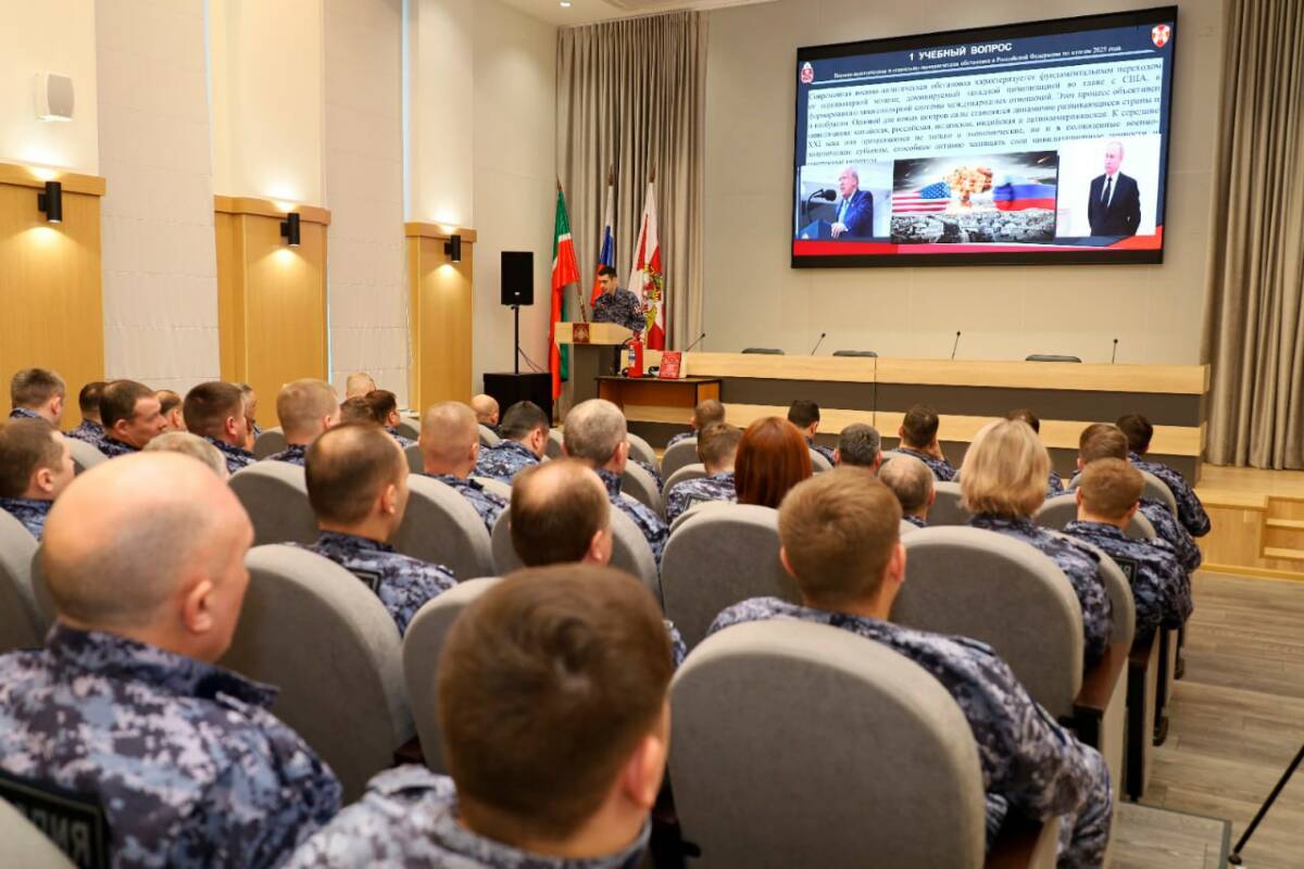 В рамках военно-политической подготовки личному составу довели актуальную общественно-политическую и социально-экономическую обстановку в стране, а также примеры мужества и героизма, проявленные росгвардейцами при выполнении служебно-боевых задач.