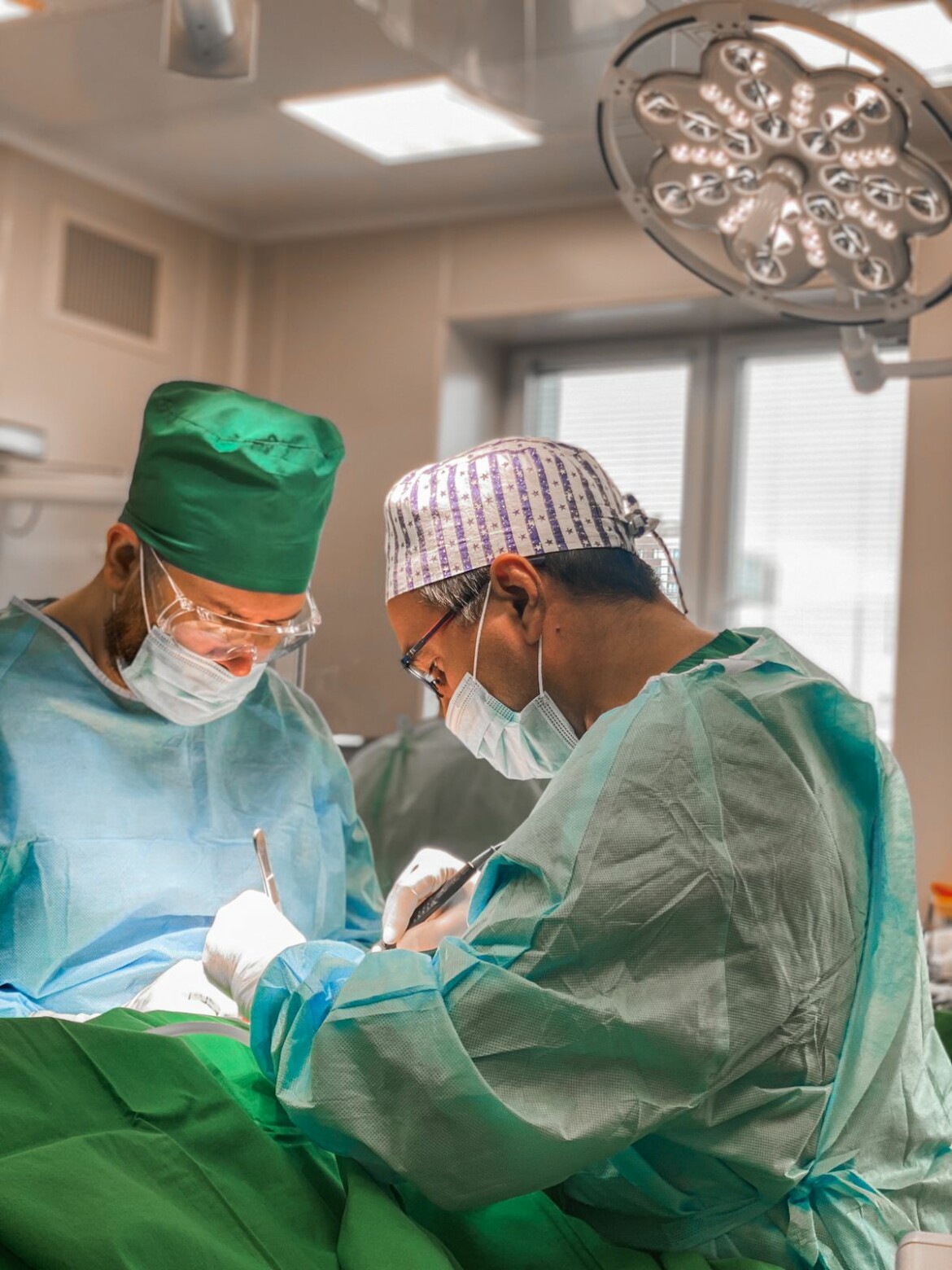 Операция длилась около четырех часов и прошла успешно. В мультидисциплинарную бригаду вошли врачи из разных клиник двух крупных городов республики: руководитель саркомной группы казанского Онкодиспансера Ильдар Сафин, сердечно-сосудистый хирург БСМП Мансур Потеев, заведующий онкологическим отделением №15 челнинского Онкодиспансера Линар Нигматуллин.