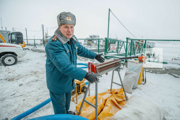 «Мы занимаемся локализацией и ликвидацией возможных разливов нефти и нефтепродуктов. Поскольку станция находится на воде, мы здесь используем оборудование, предназначенное для воды, также у нас есть оборудование для льда. При аварийной ситуации на воде мы за шесть часов должны локализовать утечку нефтепродукта и не дать растечься дальше», — рассказал руководитель татарстанского подразделения «Экоспас» Тимур Фахреев.