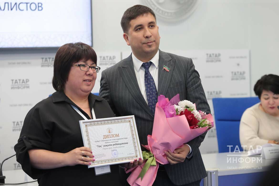 Главный редактор газеты «Кызыл таң» Республики Башкортостан Фаиль Фатхутдинов и ведущая программы «Туган тел» на государственном телевидение Башкортостана Гульшат Сафина награждены специальными призами.