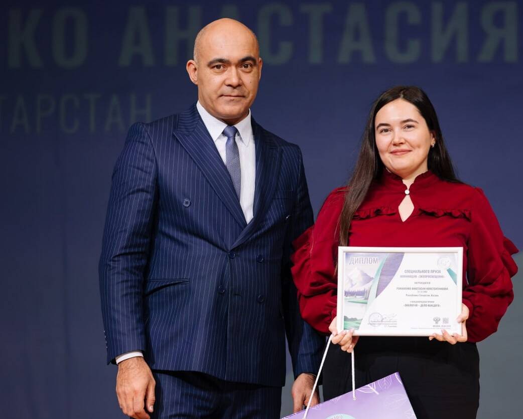 Специального приза в номинации «Экопросвещение» оказалась удостоена главный эксперт по экологии казанского предприятия СИБУРа Анастасия Романенко. Члены жюри высоко оценили вклад компании в экологическое просвещение молодежи Республики Татарстан, включая проведение экоуроков «Вторая жизнь пластика» и мастер-классов по утилизации отходов.