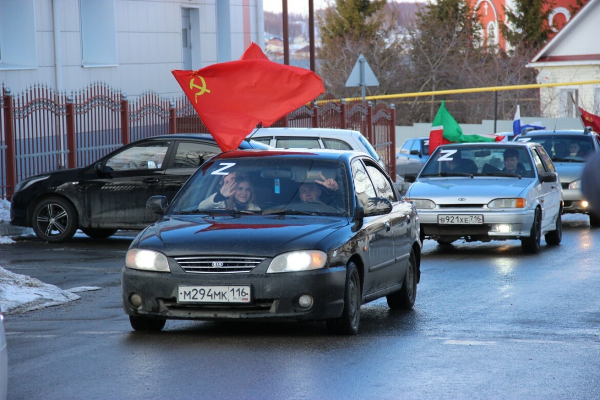 В Тетюшах автовладельцы более 70 автомобилей приняли участие во флешмобе с наклеенными на лобовых и задних окнах символами V и Z, а также вооружившись флагами Советского Союза, России и Татарстана. Об этом пишет газета «Авангард».