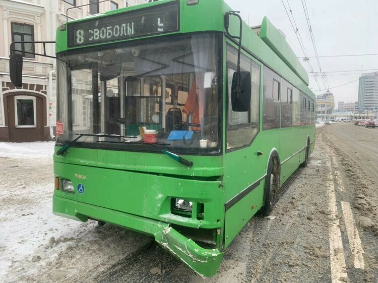 В центре Казани троллейбус догнал «Мерседес», пострадала водитель легковушки