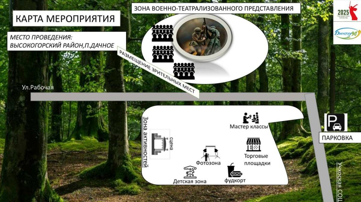 Для гостей будут представлены тематические фотозоны, выставка ретро- автомобилей и техники СВО, полевая кухня, швейбат, торговые ряды и фудкорт. Все желающие смогут принять участие в мастер-классах.