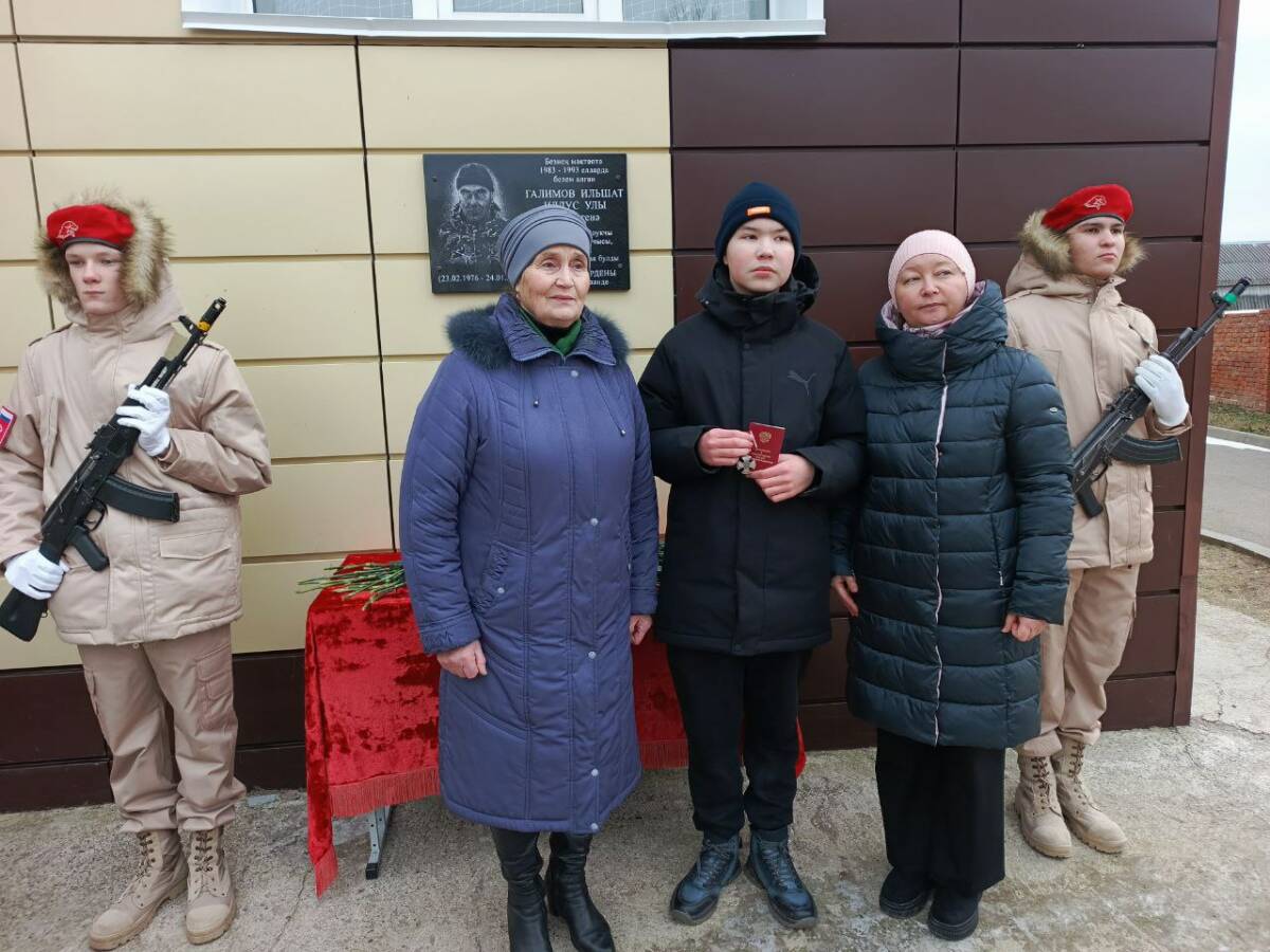 Сегодня в Дубъязской средней школе Высокогорского района Татарстана открыли мемориальную доску в память Ильшата Галимова, погибшего в зоне специальной военной операции при исполнении воинского долга. В торжественной обстановке при участии заместителя главы Высокогорского района РТ Анаса Шакирова и военного комиссара Александра Найденова было сказано много теплых слов о погибшем.