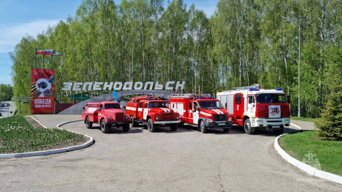 В автопробеге также участвовали пожарные автомобили АЦ-40 на шасси ЗИЛ-130, современная автоцистерна «Натиск» и пожарный автомобиль «Розенбауэр» на базе КАМАЗ. Яркая процессия красных машин с мигающими огнями проехала по главным улицам Зеленодольска, вызвав восторг и радость у горожан, и завершила свой путь у стелы на въезде в город.