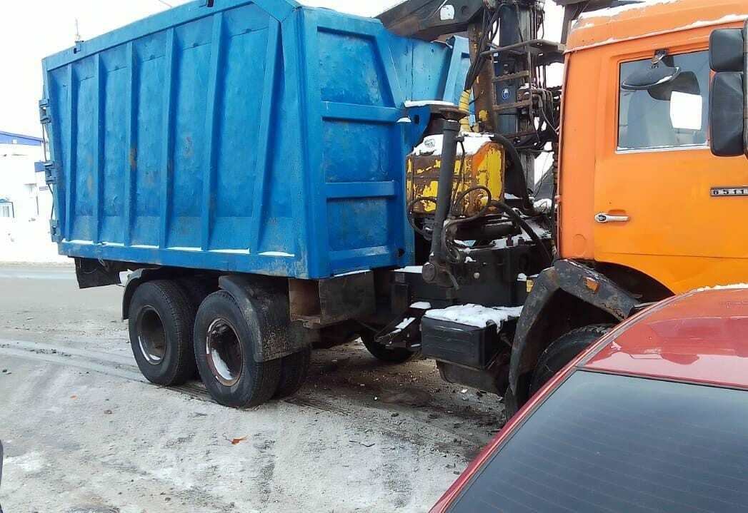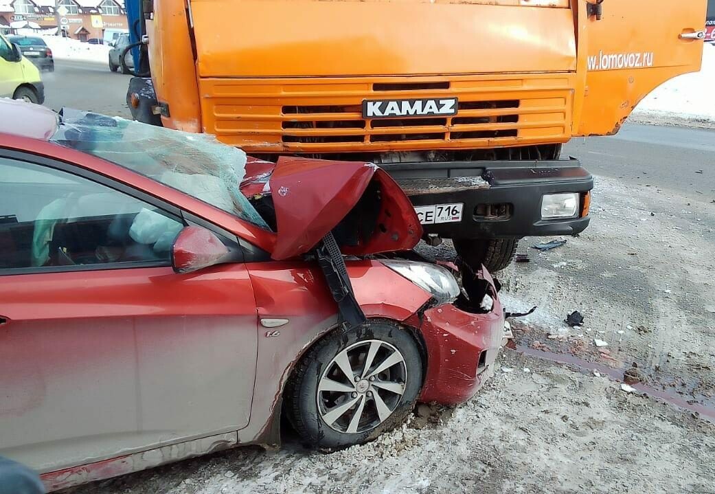 В Зеленодольске мусоровоз раздавил капот Hyundai, пассажирка легковушки госпитализирована