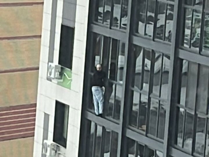 В Зеленодольском районе заметили мужчину, который вылез из окна квартиры высотного дома в ЖК «Акварели».