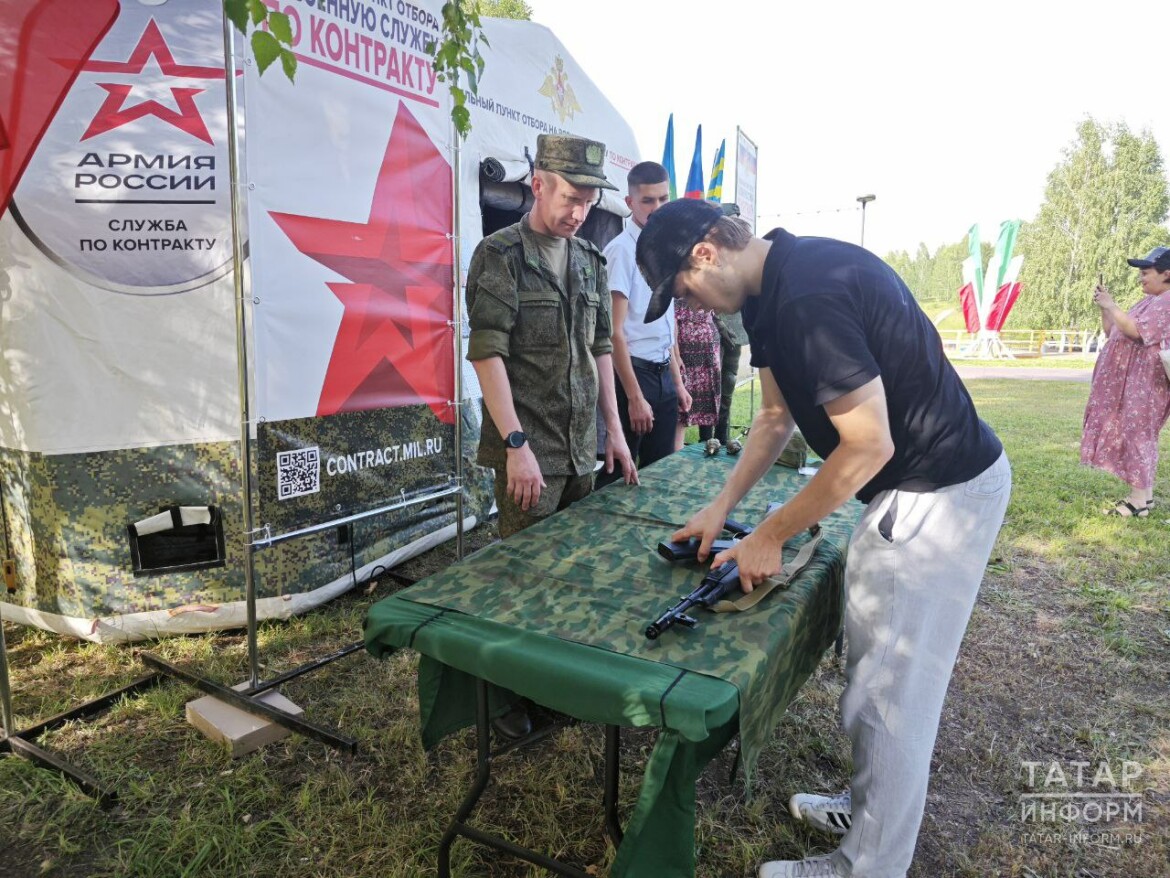 Сегодня в Зеленодольске на празднике Ивана Купалы развернули мобильный пункт отбора на военную службу по контракту. Желающие заключить контракт могут задать интересующие вопросы и узнать о нюансах службы, сообщил «Татар-информу» офицер пункта отбора на военную службу по контракту в Казани Егор Горячев.