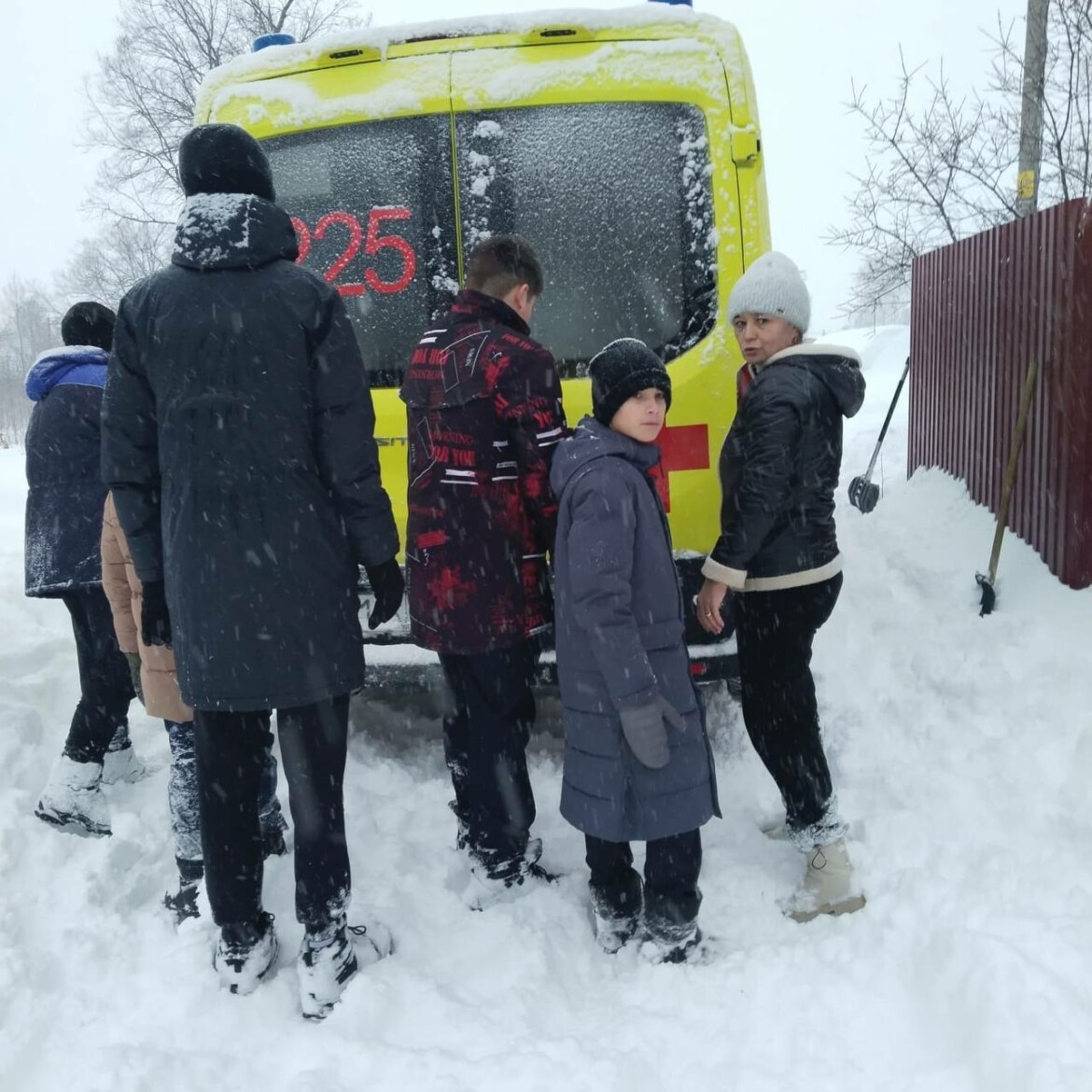 В Зеленодольске школьники помогли вызволить машину скорой помощи из снежного плена