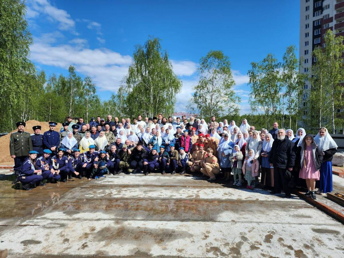 Колонна собралась довольно большая – принять участие в шествии приехали казаки, гости из Москвы, Казани, татарстанских сел Нижний Услон и Соболевское, юнармейцы из школ Зеленодольска и прихожане будущего старообрядческого храма, возводимого в честь великомученика Георгия Победоносца.