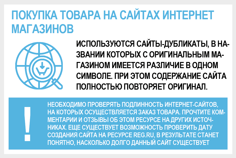 Чтобы не стать жертвой таких преступников, необходимо проверять подлинность сайтов, на которых вы заказываете товар. Прочтите комментарии и отзывы об этом ресурсе на других источниках. Еще существует возможность проверить дату создания сайта на ресурсе reg.ru. В итоге станет понятно, давно ли данный сайт существует. Сайты мошенников обычно создаются и блокируются очень часто, поэтому сайт аферистов, скорее всего, будет создан недавно.
