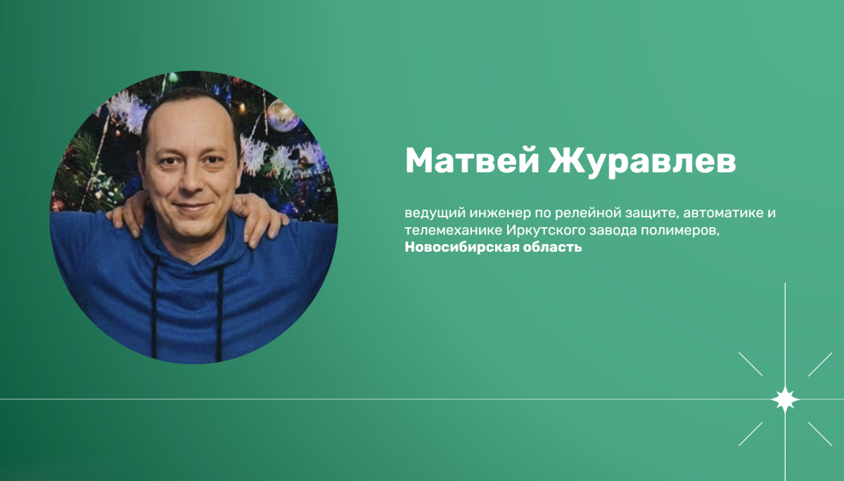 Ведущий инженер по релейной защите, автоматике и телемеханике на Иркутском заводе полимеров (Новосибирская область) Матвей Журавлев провел часть года на обучении в Санкт-Петербурге. «Вот это я понимаю – инвестиция в людей!» – отметил инженер. Межвахтовое время Матвей посвятил ремонту дома в деревне и семейным встречам с детьми, которые уже студенты.