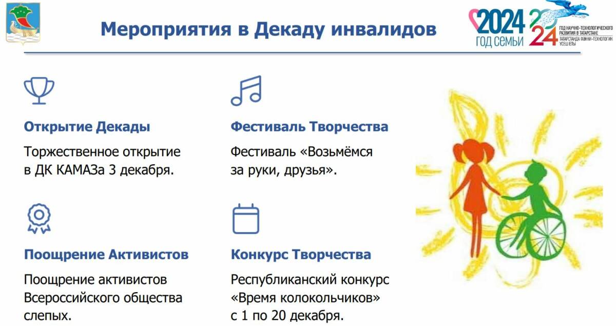 «Международный день инвалидов объединяет всех людей с ограниченными возможностями. План мероприятий включает более 130 мероприятий», — отметил Харисов.