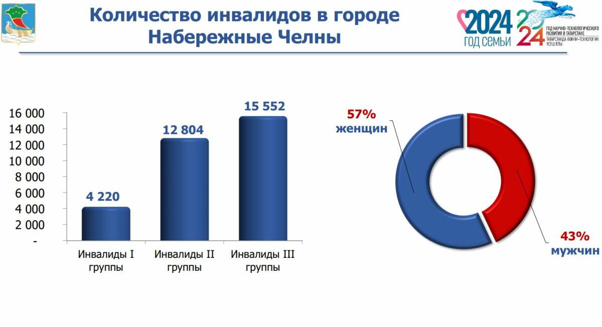 Так, по состоянию на 1 декабря 2024 года, в городе зарегистрированы 32,5 тыс. инвалидов, среди них 57% составляют женщины, 43% — мужчины. Также в Челнах проживают более 2,1 тыс. детей с инвалидностью в возрасте до 18 лет. Ежегодно в Автограде дополнительно открываются спецгруппы для детей с ОВЗ. Вновь открытые школы и детсады построены с соблюдением нормативных требований: лифт, оборудованные санузлы, стенды светового и звукового оповещения.