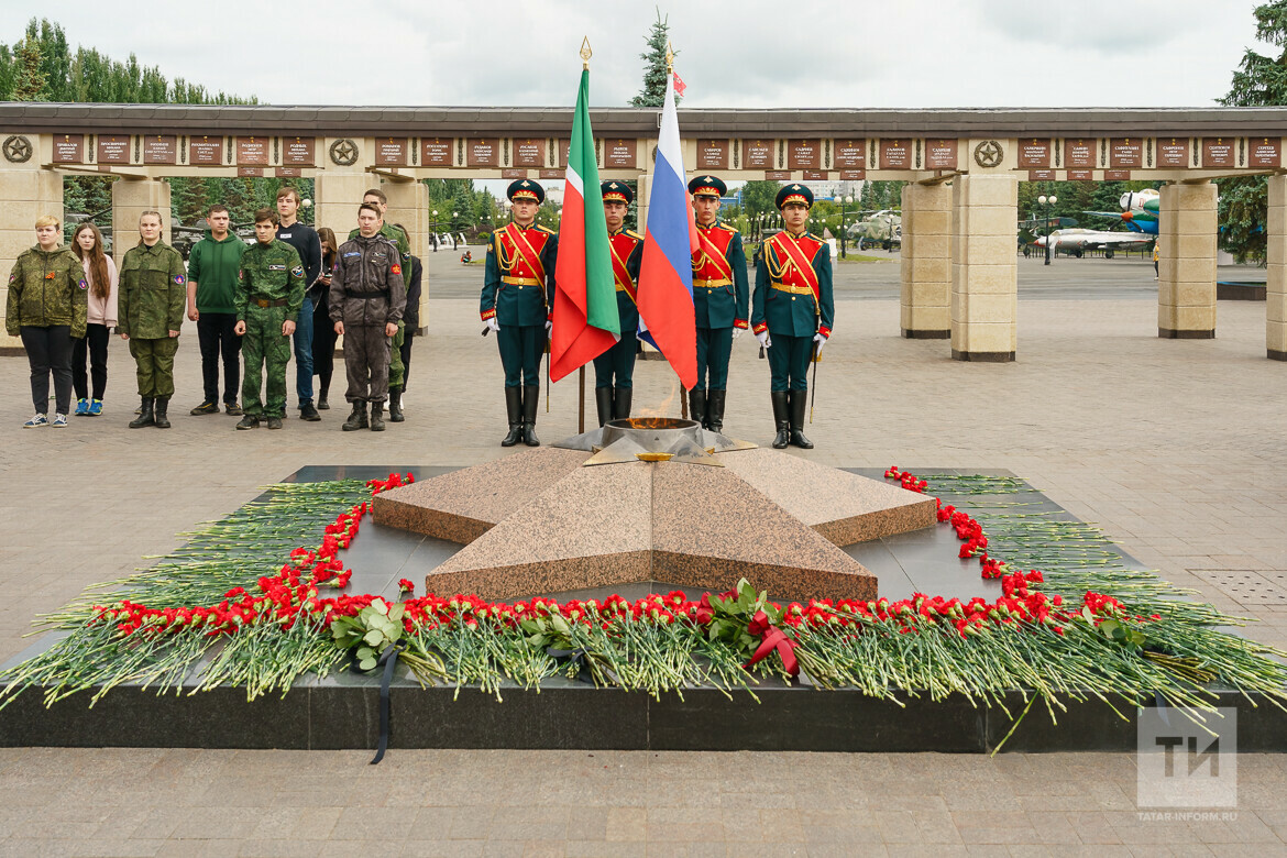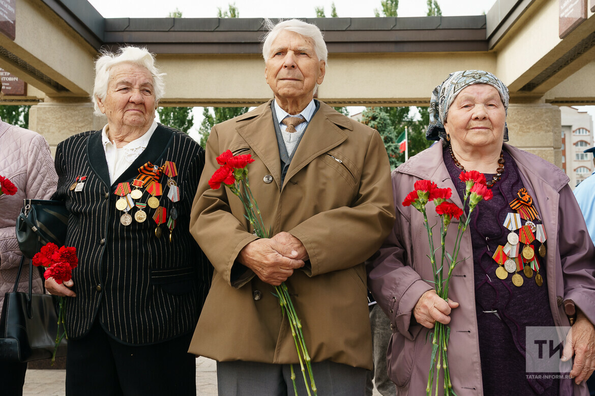 В День памяти и скорби, который отмечается на всей территории России как дата начала Великой Отечественной войны, в казанском парке Победы возложили цветы к Вечному огню. Задолго до начала мероприятия ветераны Великой Отечественной войны начали занимать свои места и принимали из рук ребят красные гвоздики.