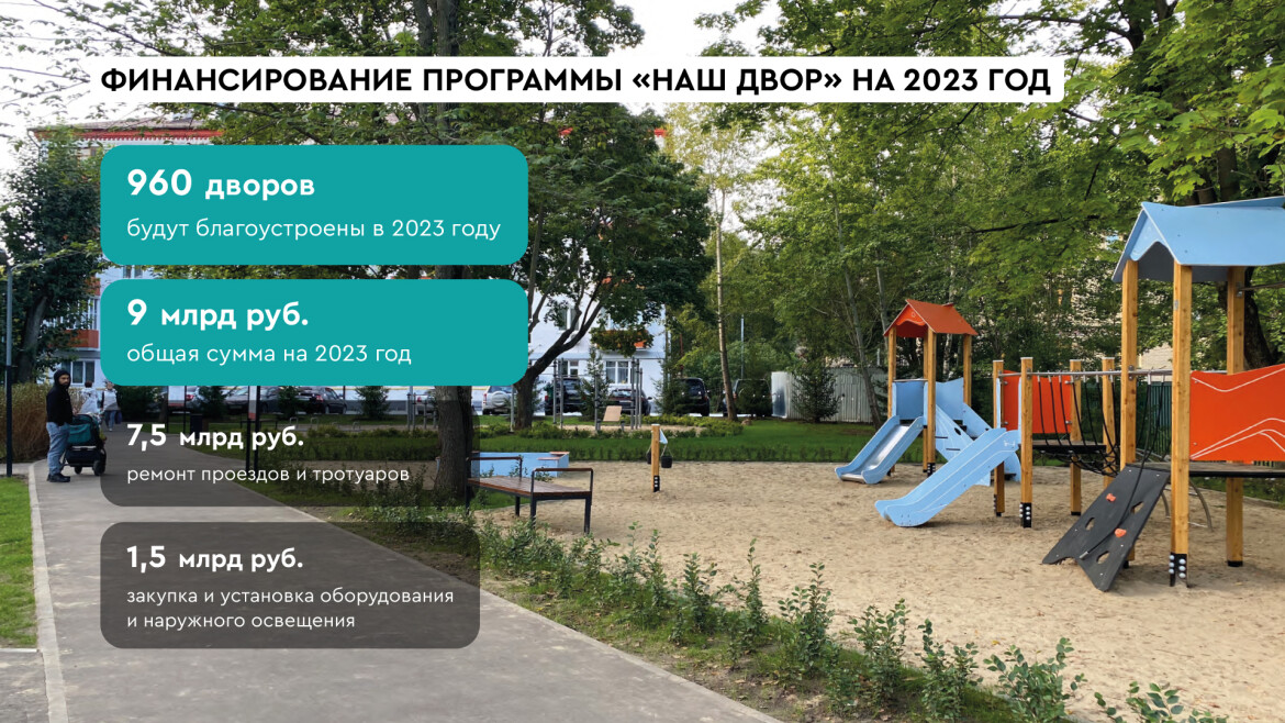 «В 2023 году планируется обустроить 960 дворовых территорий с сохранением прежнего уровня финансирования в 9 млрд рублей. Из них 7,5 млрд рублей пойдут на дорожные работы», — резюмировал Айзатуллин и призвал муниципалитеты и жителей бережно относиться к обновленным дворам.