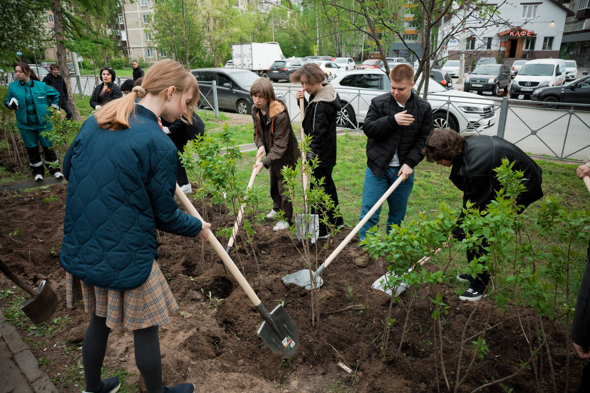 В преддверии Дня Победы рядом с гимназией №102 имени Устиновой по улице Шамиля Усманова высадили 600 кустов сирени. Акция прошла в рамках экологической программы «Зеленая формула» и приурочена также к 30-летию СИБУРа.