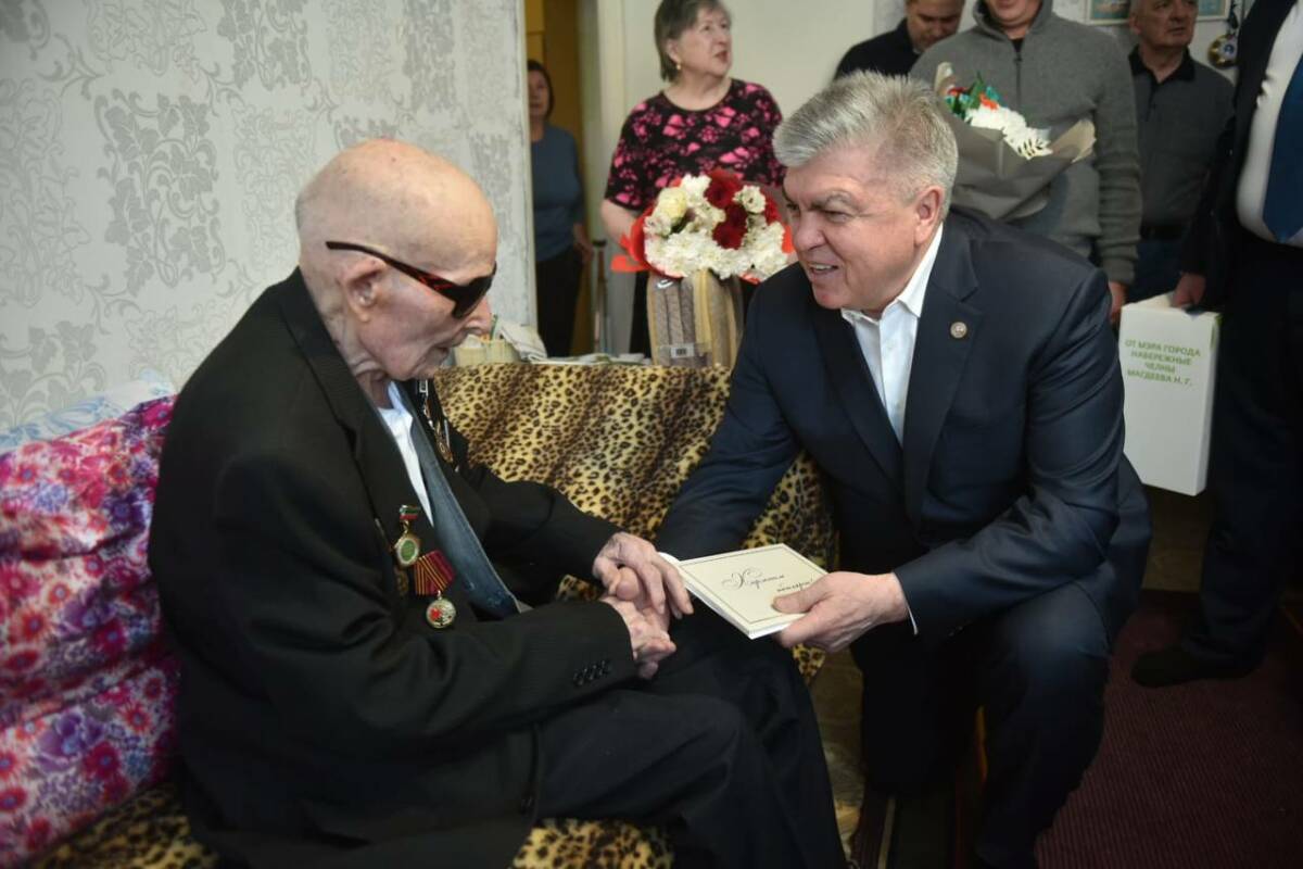 Поздравить ветерана приехал мэр города Наиль Магдеев.