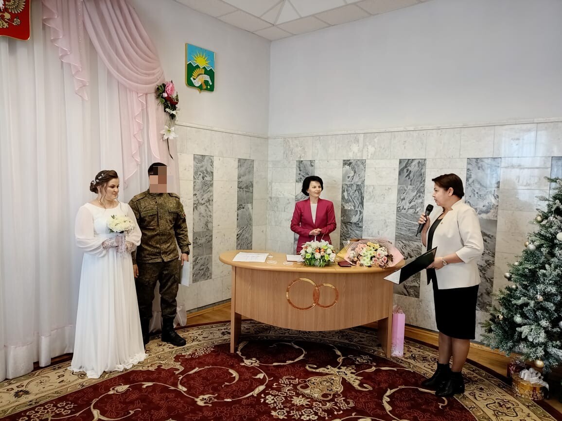В Буинске состоялась регистрация брака двух влюбленных людей — Семена и Людмилы. На фоне военных событий и службы Семена в зоне СВО молодые всё же нашли время друг для друга.
