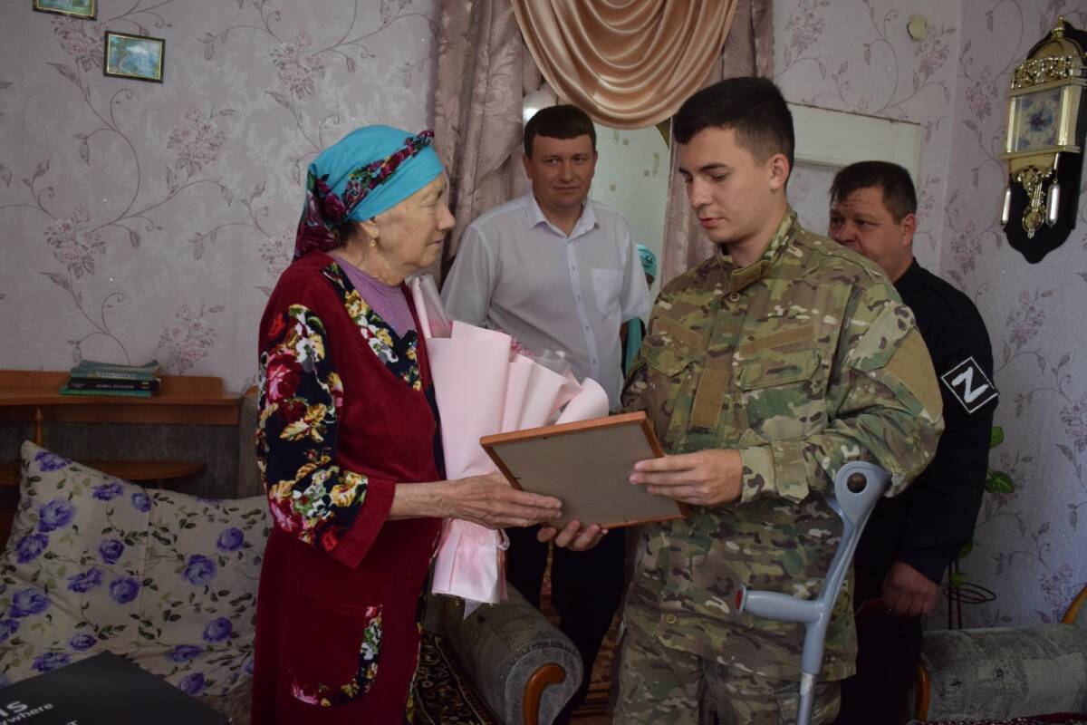 Благодарственное письмо с наградами от себя лично Суфие Мухаметовой глава района Дамир Ишкинеев передал сам. А руководитель Нурлатского отделения общественной организации «Боевое братство» Зиннур Мутагиров вручил ей медаль «За содействие СВО».