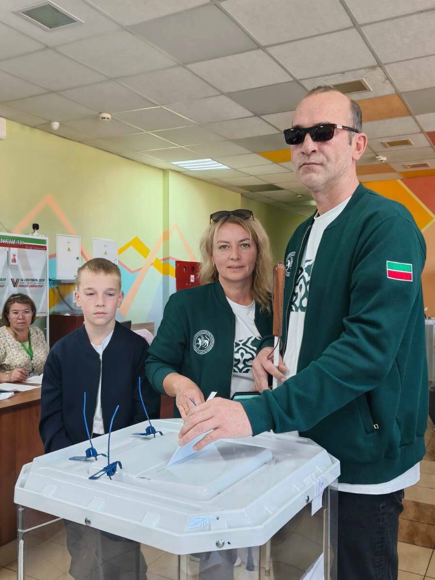 В селе Песчаные Ковали Лаишевского района активное участие в голосовании приняли защитники страны: на избирательный участок пришел ветеран специальной военной операции, победитель национального чемпионата «Абилимпикс» Александр Антонов вместе с семьей.
