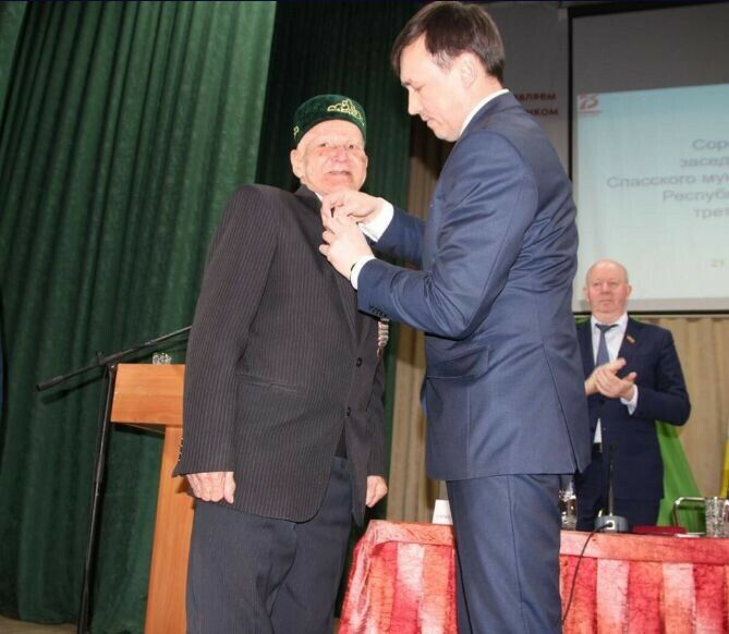 (Казань, 24 февраля, «Татар-информ»). В районном Доме культуры города Болгара состоялось заседание Совета Спасского района, на котором ветерану Великой Отечественной войны Зиннатулле Гизатуллину, живущему в Кимовском сельском поселении, вручили юбилейную медаль в честь 75-летия Победы. Об этом сообщает пресс-служба Министерства земельных и имущественных отношений РТ.