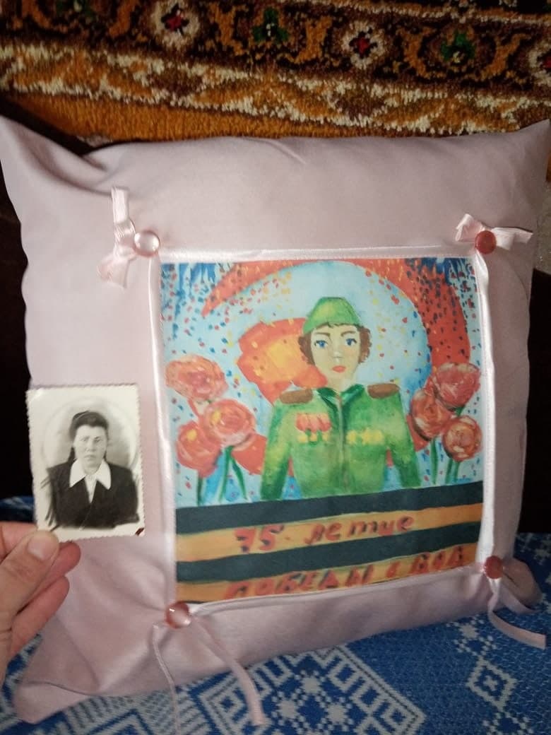 Диванные подушки с рисунками воспитанников художественного отделения Бугульминской детской школы искусств получили в подарок труженицы тыла в годы Великой Отечественной войны.