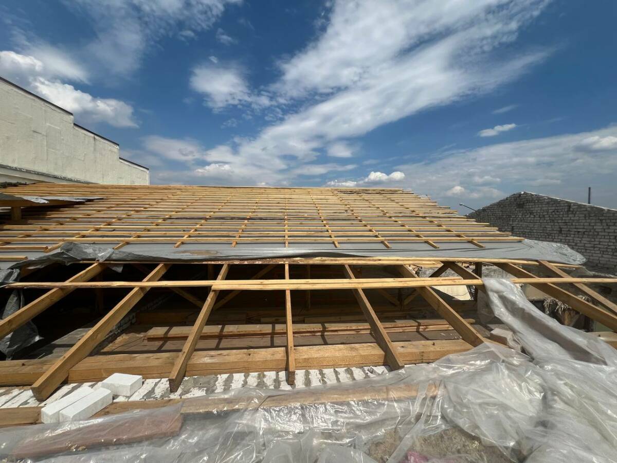 Делегация ознакомилась с текущим состоянием ремонтных работ, проводимых подрядной организацией. Особое внимание было уделено восстановлению крыши спортивного зала, которое ведется в настоящее время.