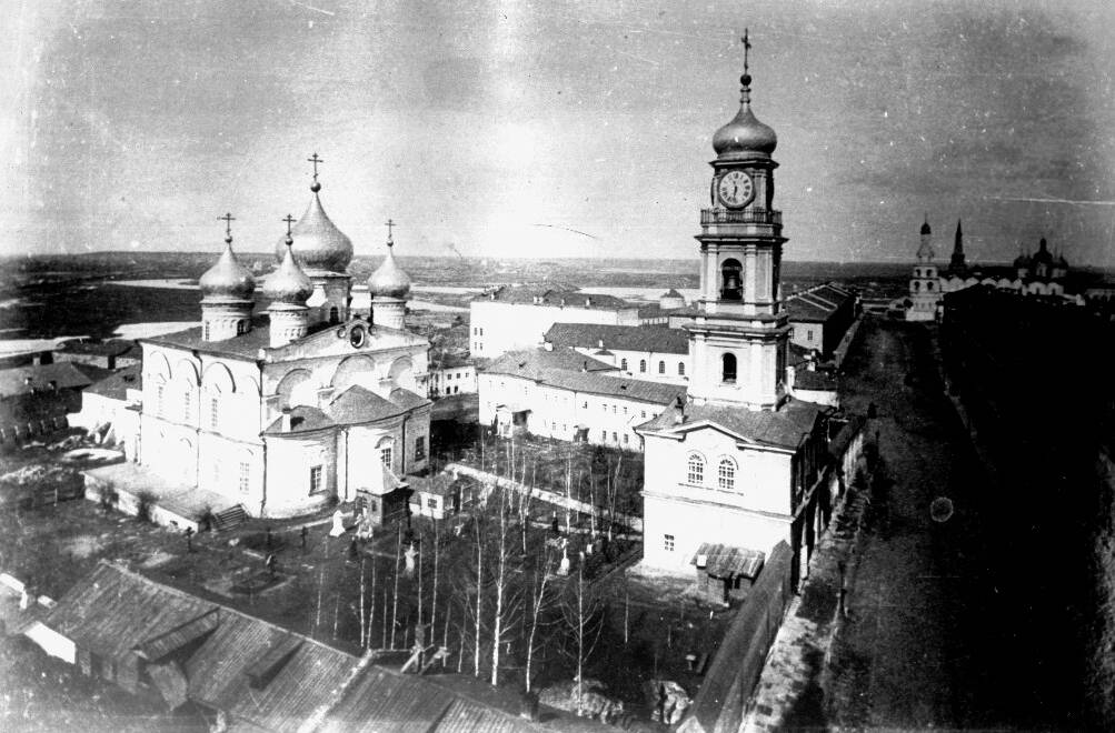 Спасо-Преображенский монастырь на территории Казанского кремля в начале XX века. За ним – Юнкерское училище
