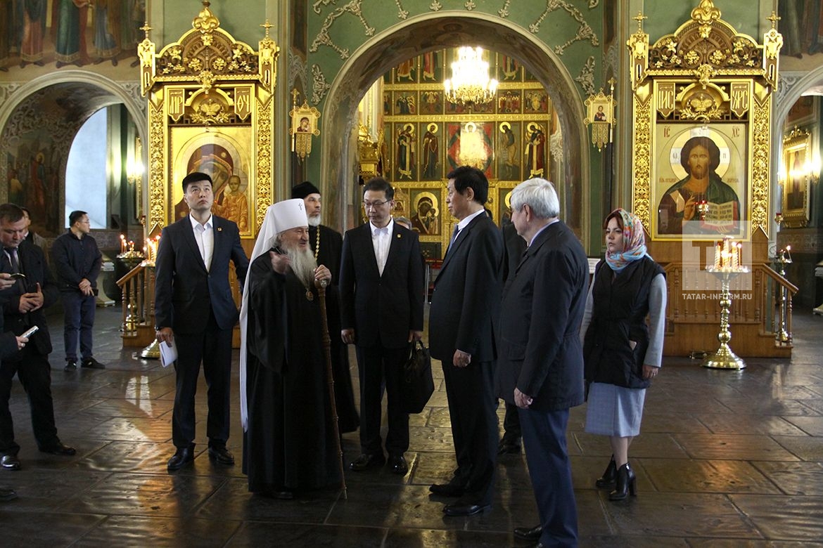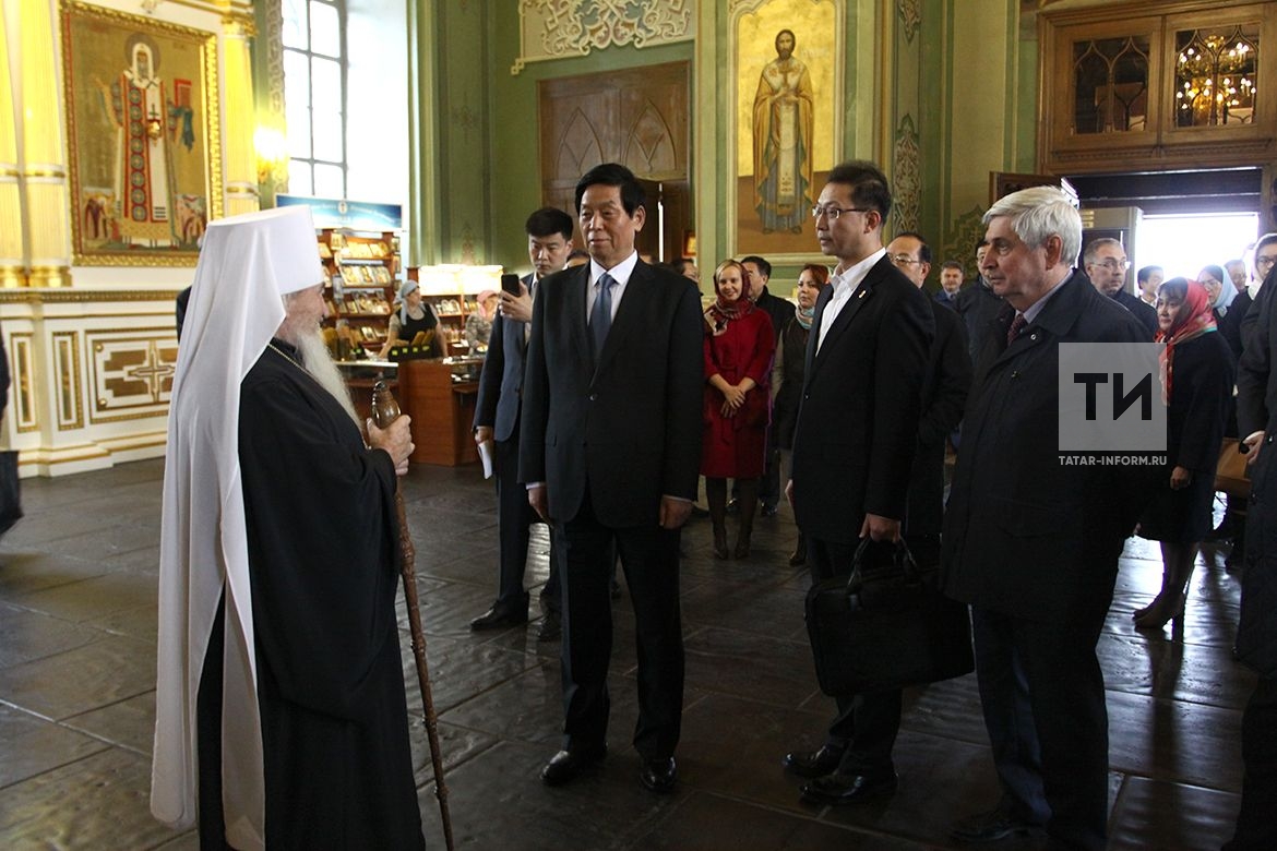 Во время экскурсии по Благовещенскому собору митрополит Феофан рассказал, что он был построен по приказу Ивана Грозного. «Собор по сравнению с китайской историей еще юн, – отметил он. – Для нас высокая честь принимать вас здесь, под сводами этого собора, который посещали все российские правители, практически начиная с 16 века все цари, императоры бывали здесь. Вы только что вернулись из Москвы, где видели собор Василия Блаженного. Наш собор строили те же мастера. Это говорит о том, что Казань в Российском государстве всегда занимала и поныне занимает ведущее место».