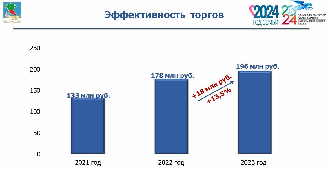 Благодаря электронным торгам экономия бюджетных средств Набережных Челнов ежегодно растет. Начальник отдела муниципального заказа исполкома Автограда Марсель Хайрутдинов доложил, что экономия по результатам конкурентных процедур в прошлом году достигла 196 млн рублей — эти средства были направлены на проекты социальной сферы.