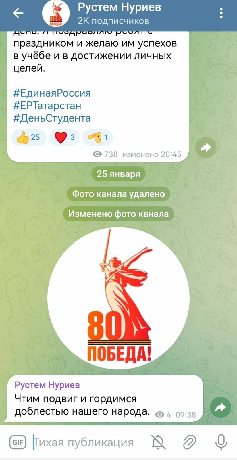 Первым, кто разместил логотип в своем Telegram-канале, стал глава Елабужского района Рустем Нуриев.