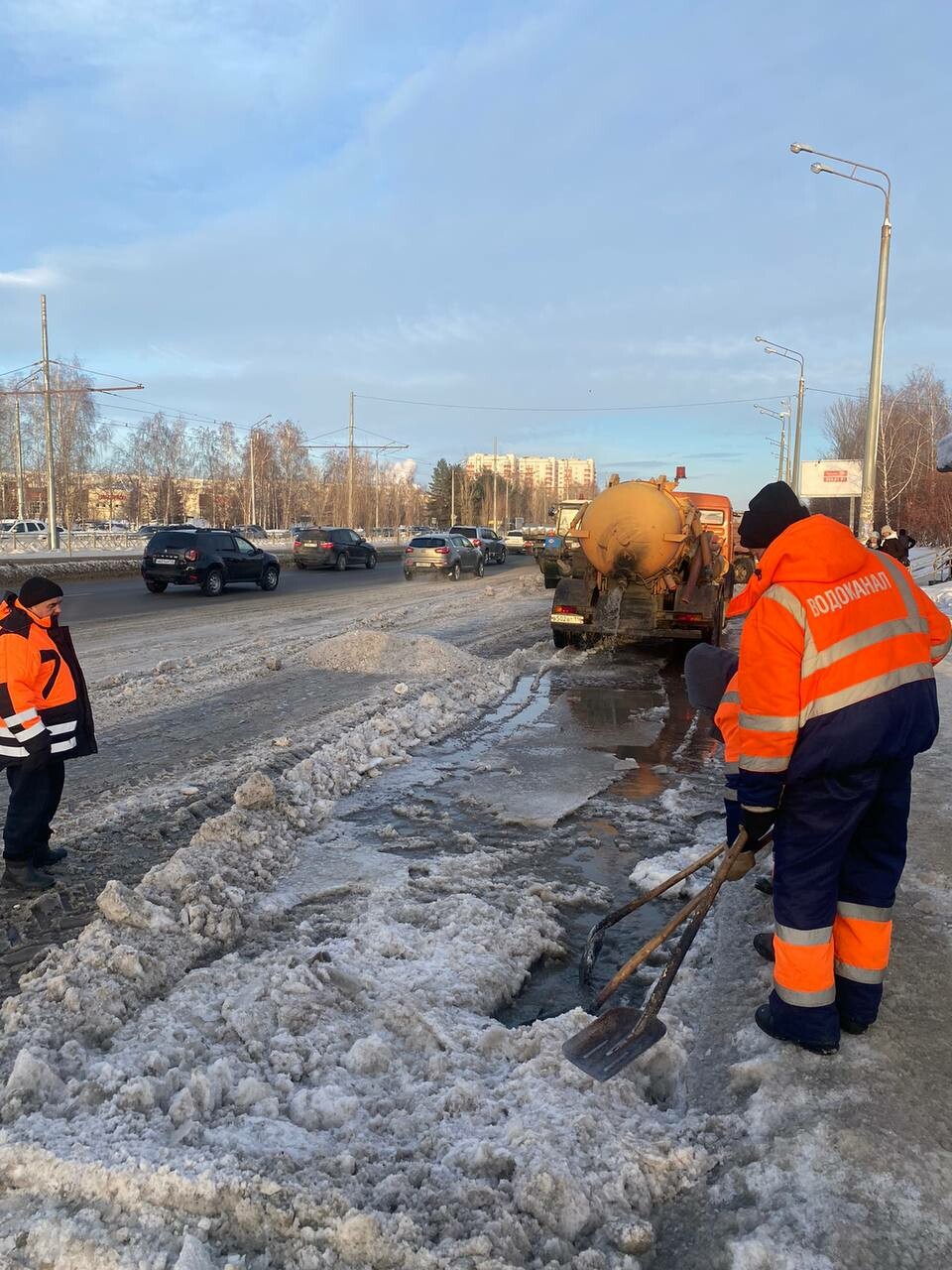Работа, по его словам, продолжается весь день – сначала откачивали воду, а затем убирали наледь. Вместе с тем сейчас «Водоканал» еще ремонтирует трубопровод.