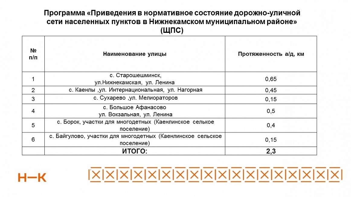 Руководитель исполкома Роман Булатов уточнил, что эта цифра предварительная, лимиты еще будут утверждаться. Уже решено, что в Нижнекамске отремонтируют участок автомобильной дороги по проспекту Мира от кольца Строителей до улицы 30 лет Победы, а также внутриквартальную дорогу у спорткомплекса «Дружба».