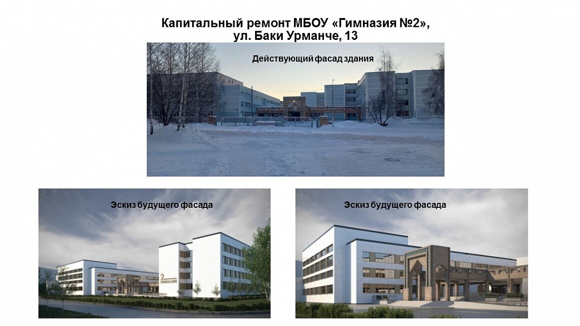 На ремонт гимназии № 2 в Нижнекамске будет выделено 471,5 млн рублей. Здесь планируется обновить фасад, отремонтировать кровлю, заменить окна и двери, закупить мебель и оборудование.