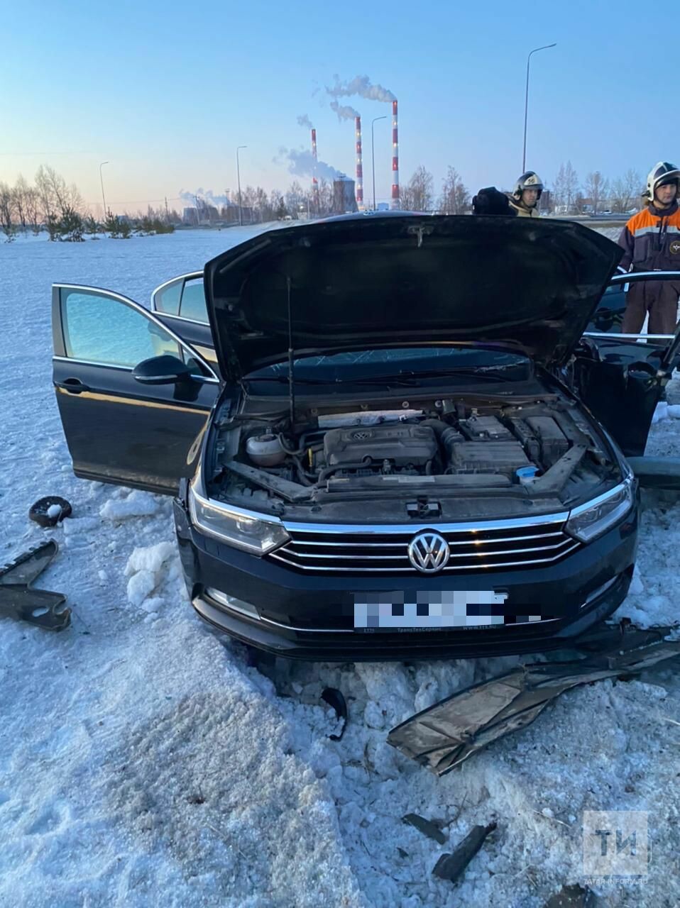 Как стало известно «Татар-информу» от очевидцев, водитель легковушки Volkswagen не справился с управлением на скользкой дороге, машину откинуло с дороги, и она снесла отбойник.