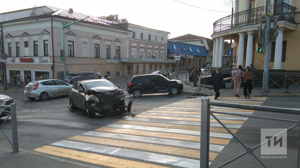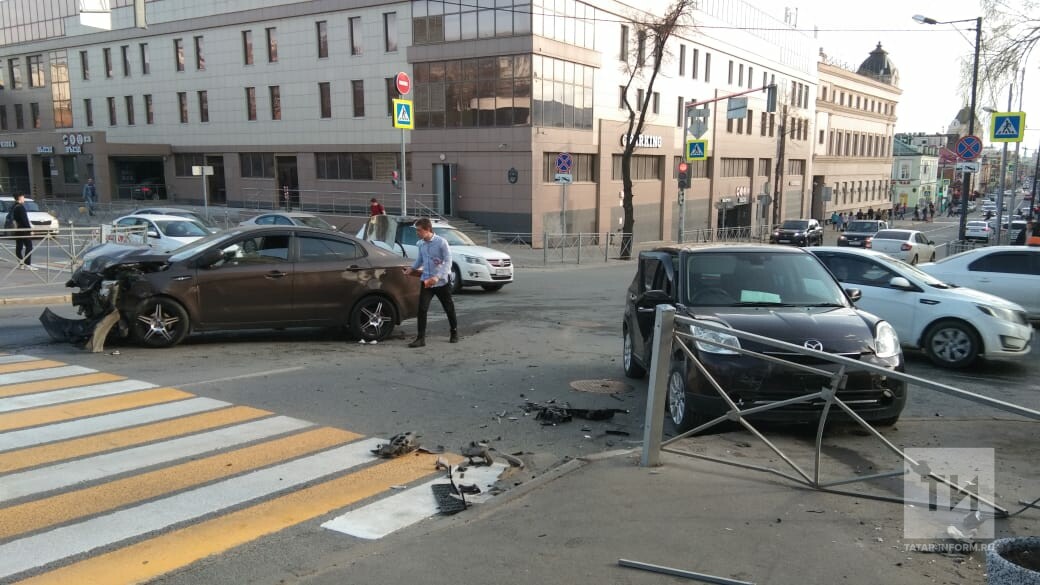 Водитель Mazda пострадал, не поделив перекресток с другим авто в центре Казани