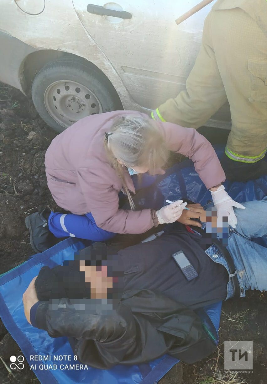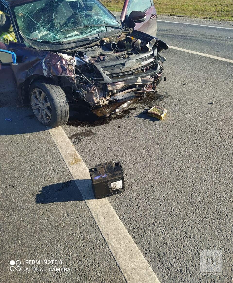 Водителей зажало в машинах в лобовом ДТП с двумя авто на трассе в Татарстане