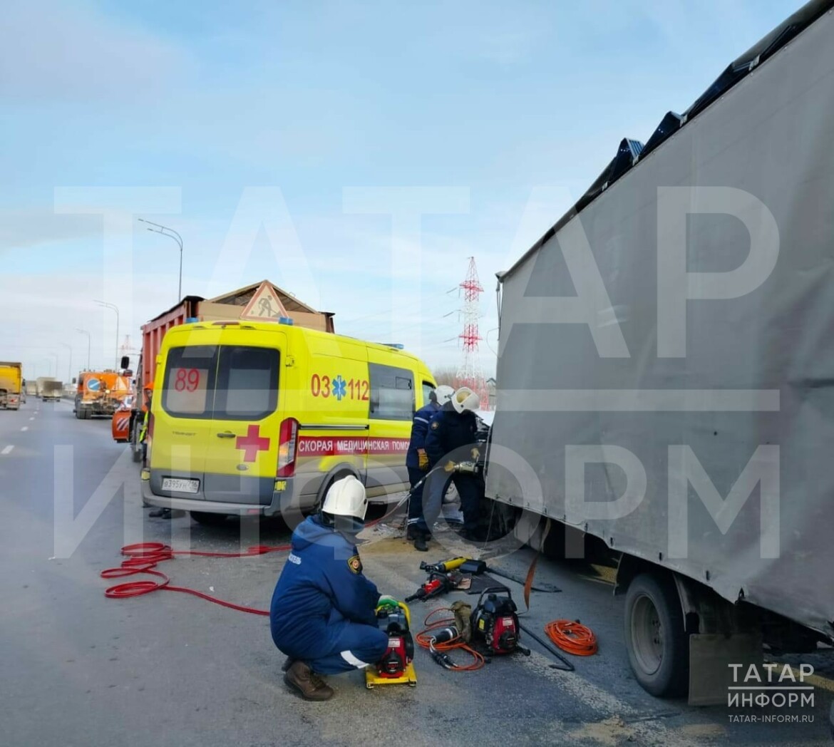 Водителя зажало в искореженном авто после ДТП на трассе под Зеленодольском
