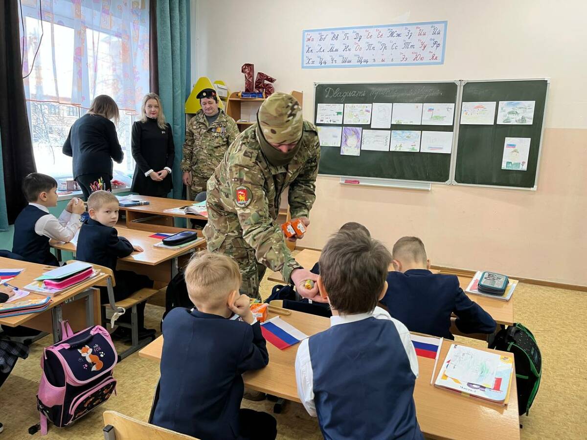 Для школьников эта встреча стала неожиданной и очень важной: военнослужащего они называют героем – так же, как и всех, кто сегодня защищает страну и помогает бойцам.