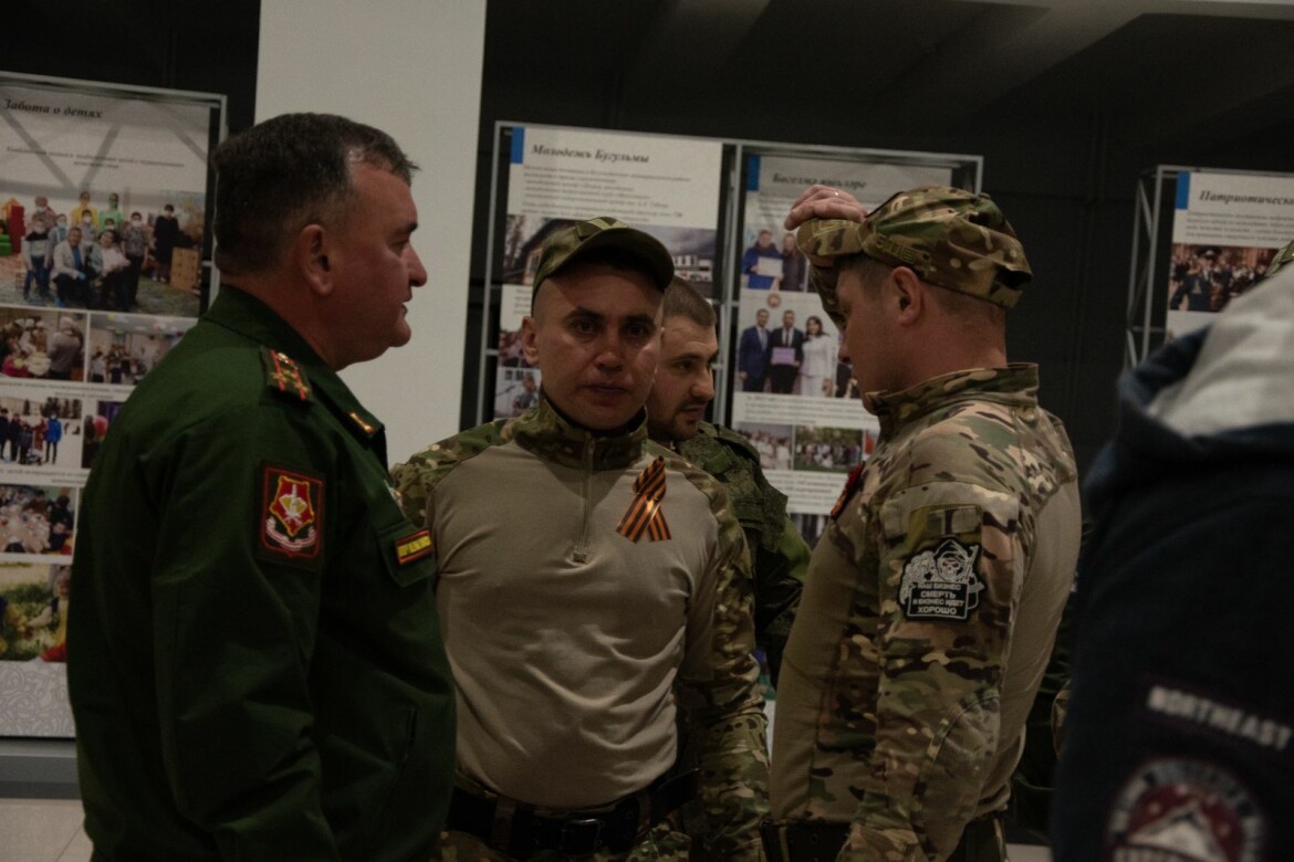 Глава Бугульминского района Татарстана Линар Закиров встретился с бойцами, прибывшими в краткосрочный отпуск из зоны спецоперации. Военнослужащие выразили пожелание — создать зал, посвященный специальной военной операции, — на территории музея боевой славы у городского военкомата.