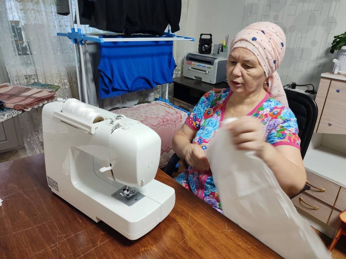 Помимо этого, мастерица шьет простыни и наволочки, из которых в дальнейшем жители Дома-интерната для престарелых и инвалидов сошьют подушки. Для этого пожилые волонтеры из группы «Вместе мы сила» распушивают синтепон и набивают получившимся пухом наволочки.