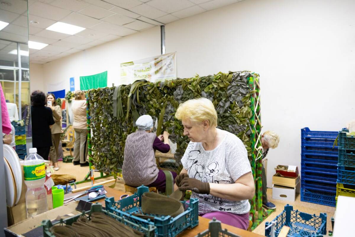 В пункте «Мегасети», которая находится в «Мегацентре», с ноября 2022 года на данный момент сплели 500 маскировочных сетей, изготовили 1650 нашлемников на каски, сшили большое количество полотенец, постельного белья, пеленок, наматрасников.